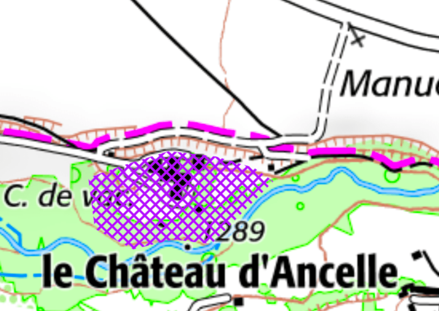 - Les champs cultivés et les espaces pastoraux ne sont pas identifiés en violet mais il restent également des zones interdites.